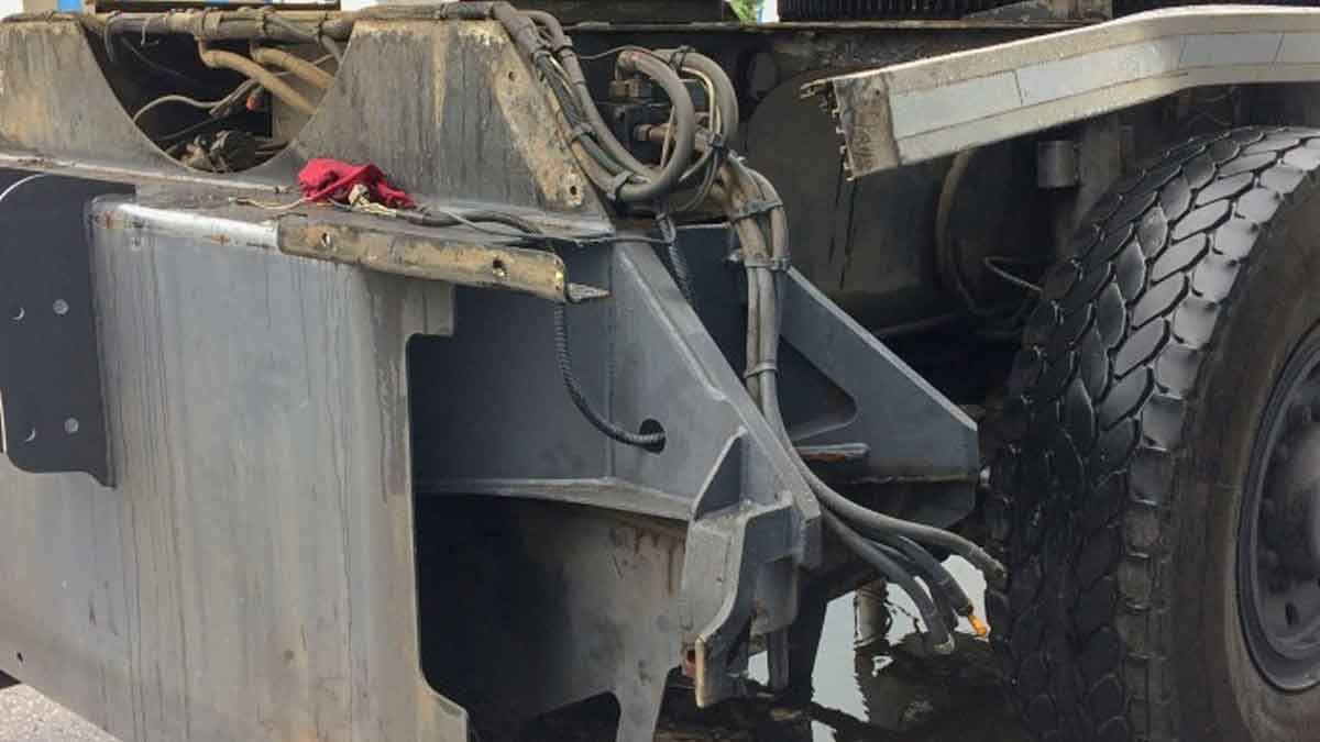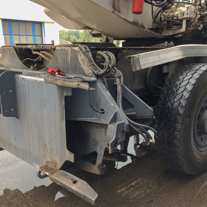 Servisní tým Ti kran servis s.r.o. na místě události zjistil destrukci výsuvných i pevných dílů obou zadních opěr. Výsuvné díly nebylo možno zasunout do transportní polohy, byly tedy demontovány.